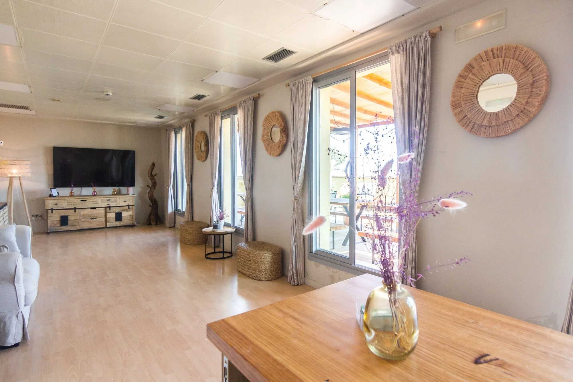 In terms of equipment, the venue is fully prepared to meet the technical requirements of corporate events and professional meetings. It features dedicated Wi-Fi and fibre-optic internet, complete audiovisual systems and adjustable lighting that can be tailored to the needs of each event. The service includes on-site staff support, event coordination and cleaning, as well as the option to add extra equipment such as stages, videoconferencing systems or presentation supports. From a catering perspective, Ático Mediterráneo offers great flexibility, as there is no exclusive catering requirement. The venue collaborates with a range of specialised providers who can adapt to any food and beverage concept. In addition, there is a small fully equipped office area, suitable for informal gatherings or support services.