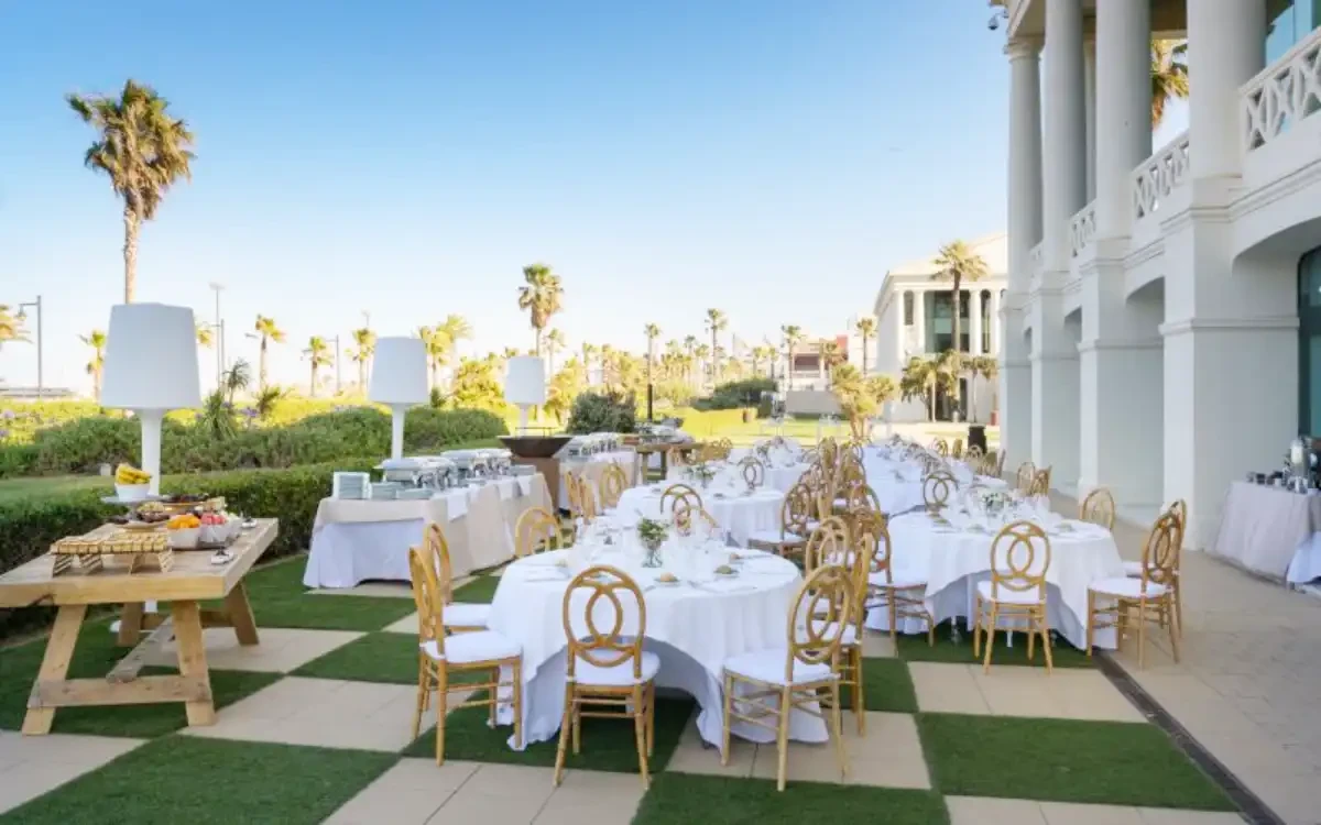Hotel Balneario Las Arenas is a five-star Grand Luxury hotel that combines the elegance of the former historic spa with modern facilities and a privileged seafront setting. Its frontline location by the beach, next to the Malvarrosa promenade and the Cabañal beach area, adds exceptional value for those seeking an unforgettable setting for both private celebrations and corporate events. The 1898 building has preserved its classic character down to the finest detail while offering all contemporary comforts: bright, elegantly designed interiors, high-end gastronomy, a spa, direct access to the sea and expansive gardens, all conceived to deliver an experience of maximum comfort.