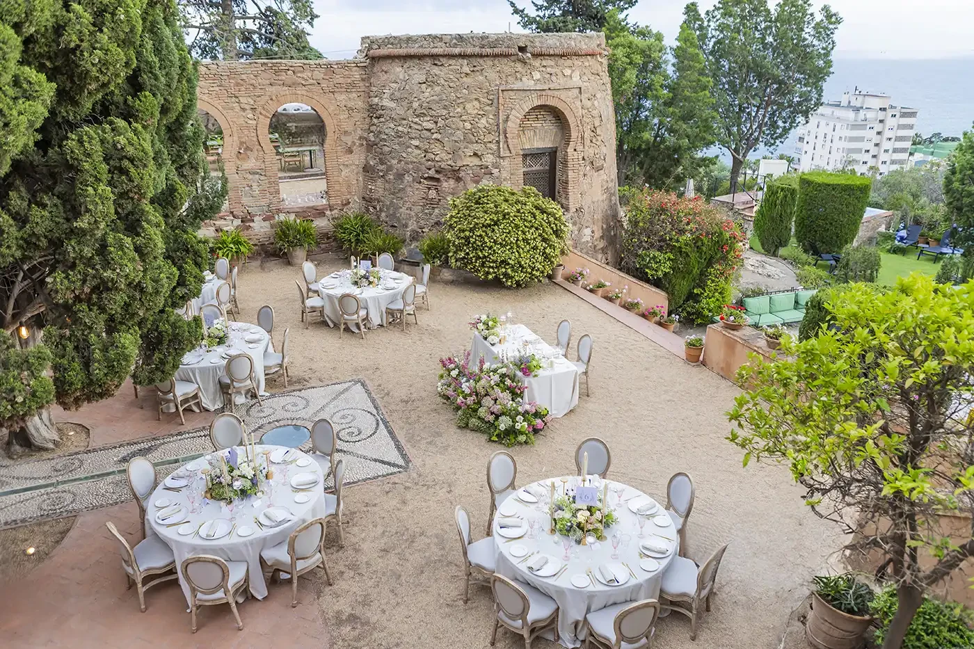 Hotel Castillo de Santa Catalina rises on a hill overlooking the Bay of Málaga, offering unparalleled panoramic views of the Mediterranean. This five-star hotel was created through the restoration of a historic building dating back to 1932, built on the remains of a former 17th-century fortress, which gives the property a monumental and highly distinctive character. Its Arab–Renaissance-inspired architecture, together with its meticulously maintained gardens and sea-view terraces, creates a truly unique setting that goes beyond the conventional, offering a sensory experience ideal for special events.