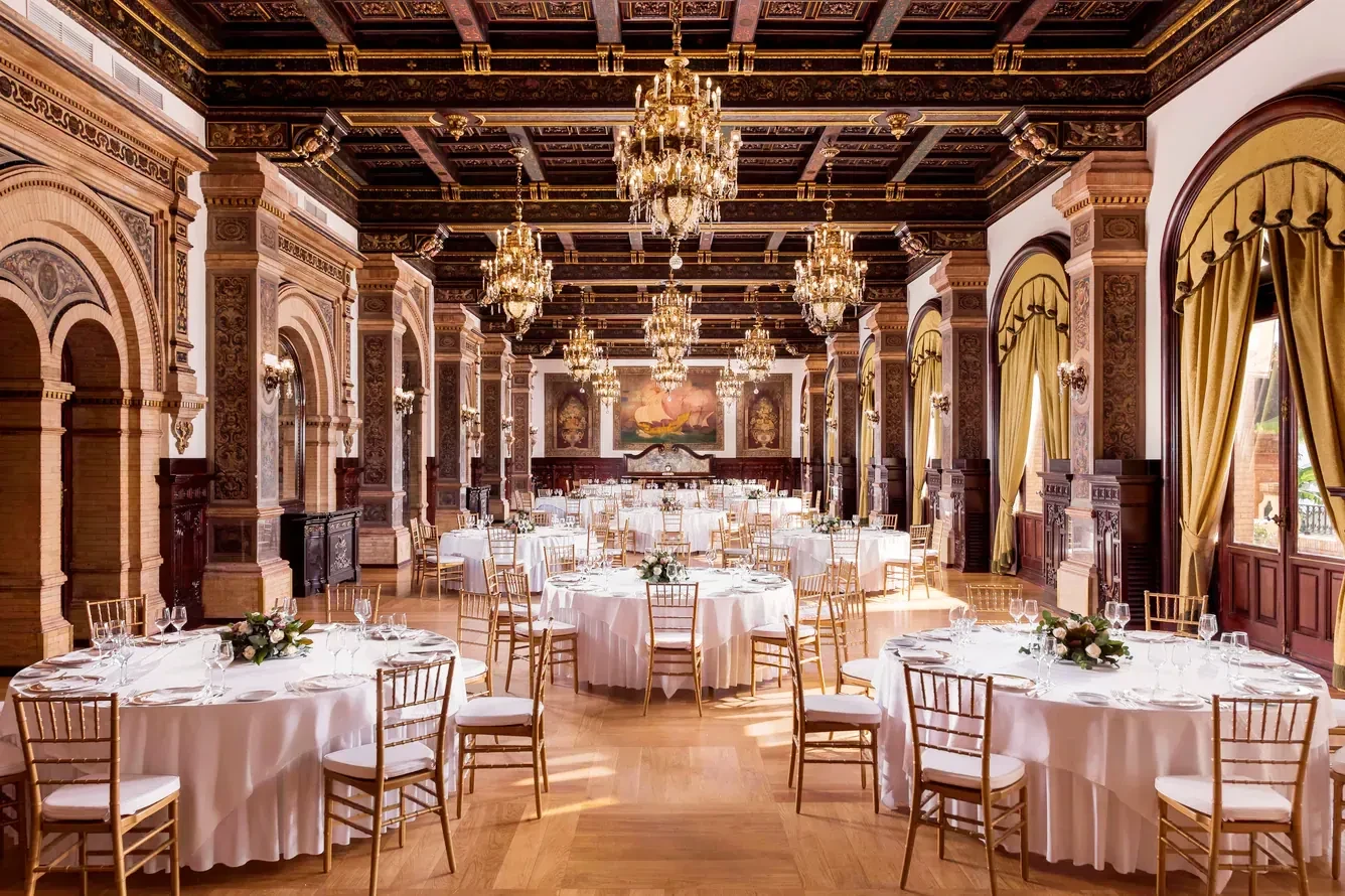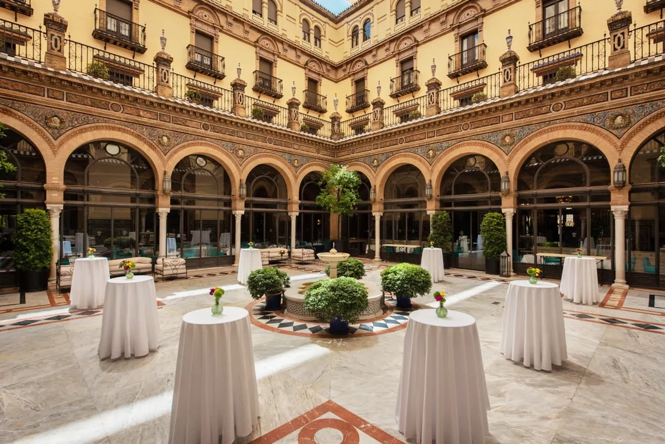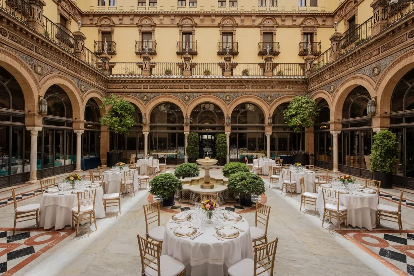 Located in the very heart of Seville, Hotel Alfonso XIII is a majestic setting for corporate and private events. Built between 1916 and 1928 by commission of King Alfonso XIII, its Neo-Mudéjar regionalist architecture and privileged position next to the Royal Alcázar and the Cathedral give the hotel a unique character that blends history, style and functionality. Its iconic façade, cobbled courtyards and décor inspired by Andalusian splendour convey a sense of distinction that enhances the identity of any event, whether an international convention, a product launch or a social celebration.