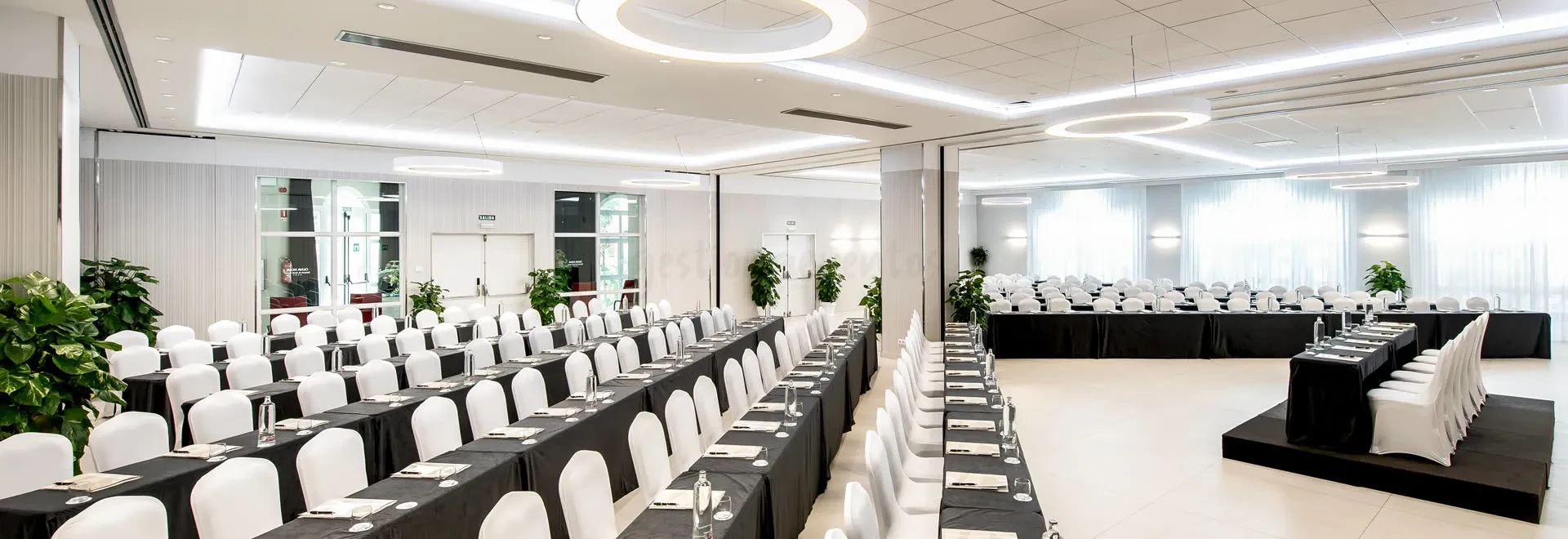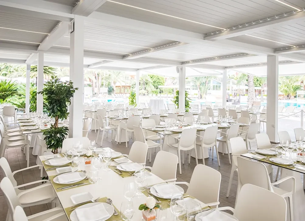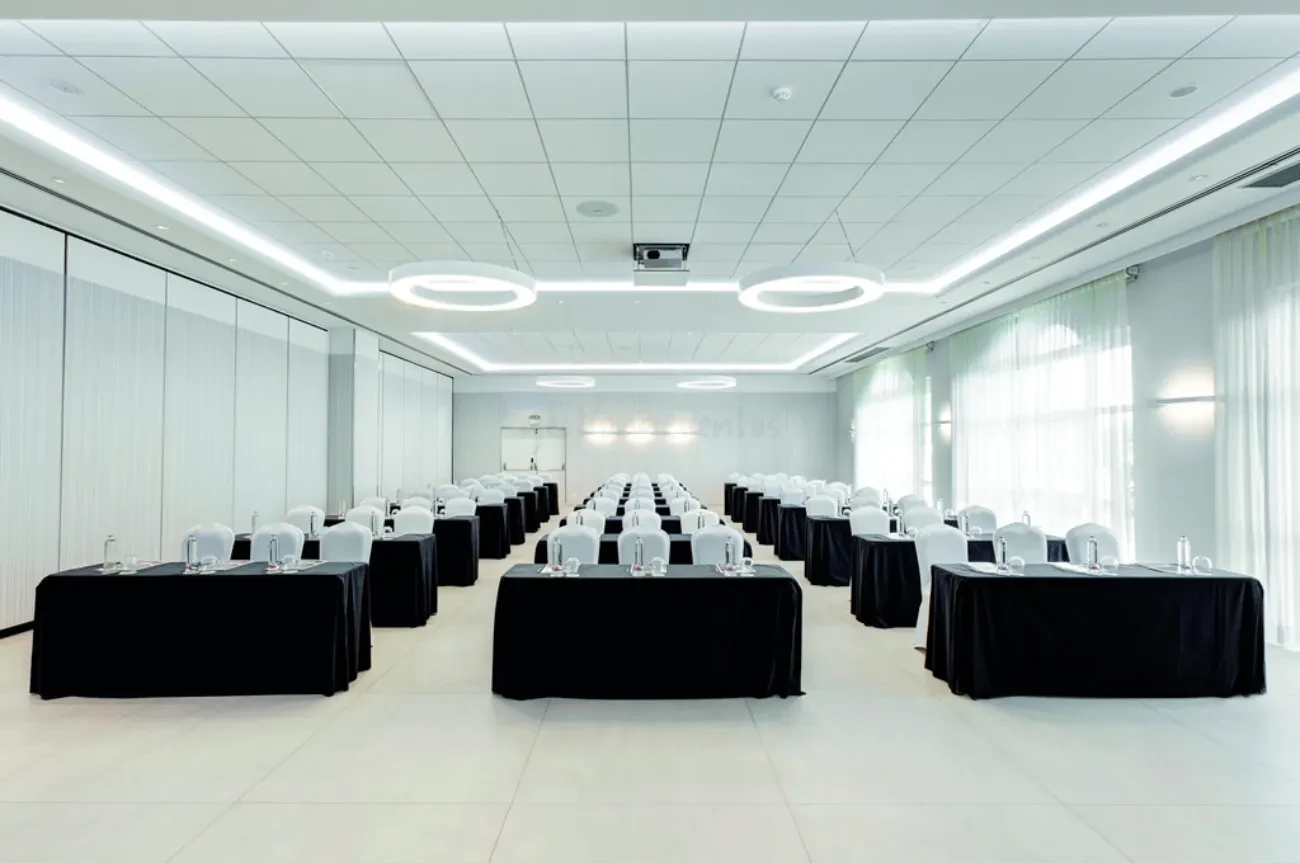 The hotel features meeting rooms equipped with audiovisual technology, high-speed Wi-Fi connectivity and flexible layouts thanks to movable partitions that allow adaptation to different formats and capacities. The resort also offers highly versatile outdoor spaces, including a premium rooftop with views over the Mediterranean, poolside terraces and garden areas ideal for cocktail receptions, open-air dinners or team-building events. In addition, it boasts an equestrian centre and a golf course designed by Severiano Ballesteros, allowing the formal side of the event to be complemented with incentive activities and sports experiences.