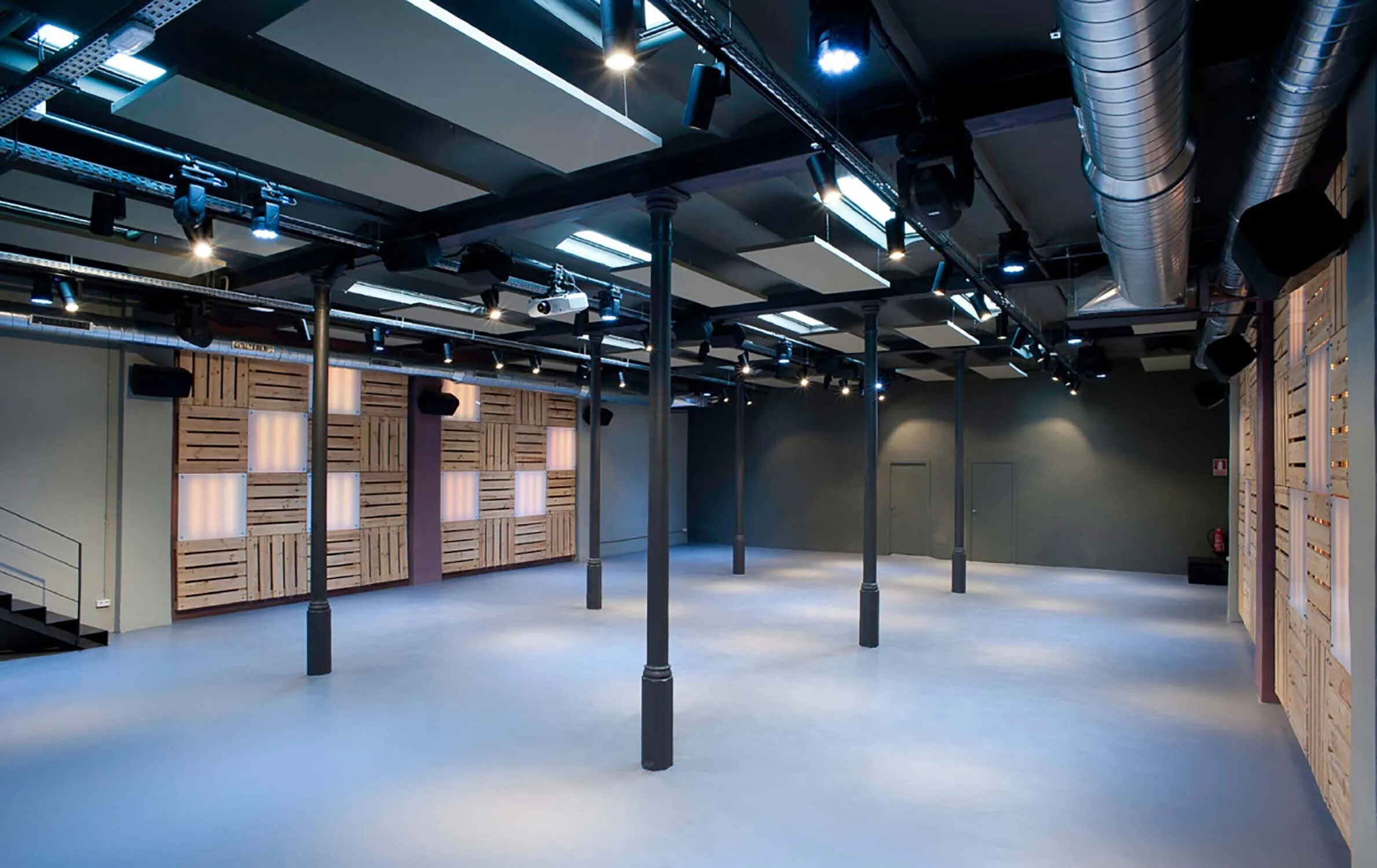 Housed in a 20th-century building, El Portal de l’Eixample has been carefully renovated while preserving original elements such as its modernist entrance and cast-iron columns. The venue blends Barcelona’s modernist heritage with an industrial-style interior, featuring neutral-toned walls and high ceilings crowned by 14 skylights, which flood the space with abundant natural light.