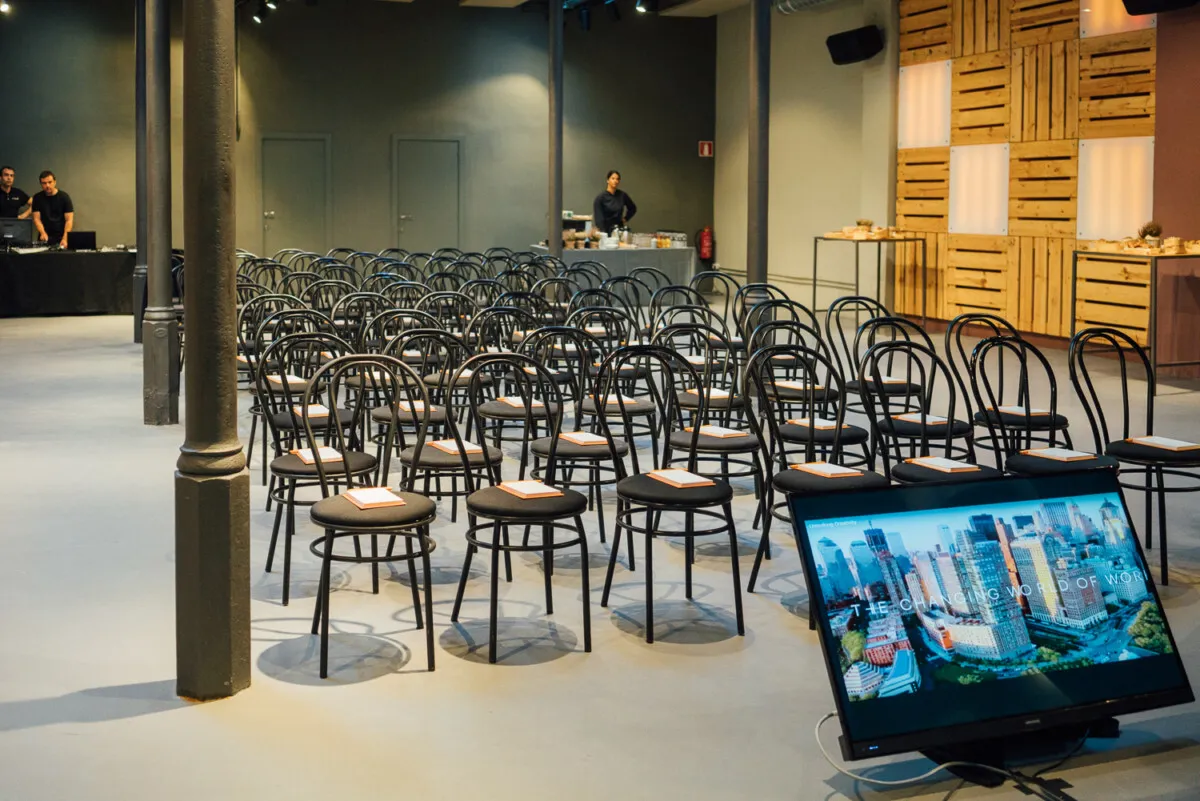 El Portal de l’Eixample is fully equipped to meet all technical requirements, including Wi-Fi connection, PA system, projectors, screens, adaptable technical lighting and audiovisual equipment. A dedicated team supports and advises event organisers from the planning stage through to execution, tailoring all technical details to the specific needs of each event.