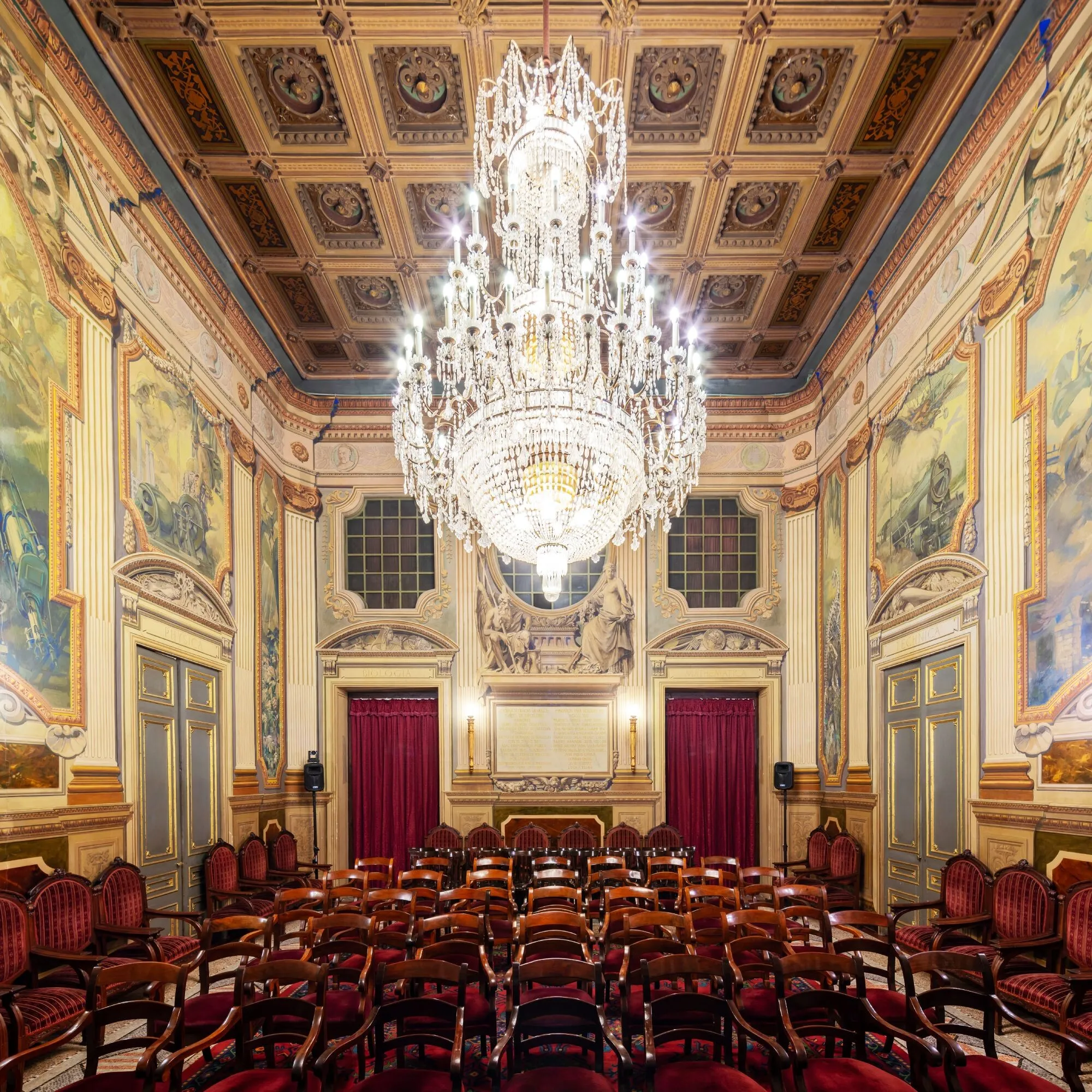 The building stands out for its elegant rooms, designed to accommodate all types of corporate events. Among them, the main auditorium is particularly noteworthy, having hosted internationally significant events and historic milestones in the scientific and artistic fields. All rooms are meticulously maintained and equipped with the latest technology, ensuring the highest quality standards for every event.