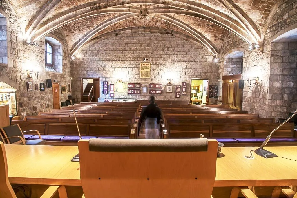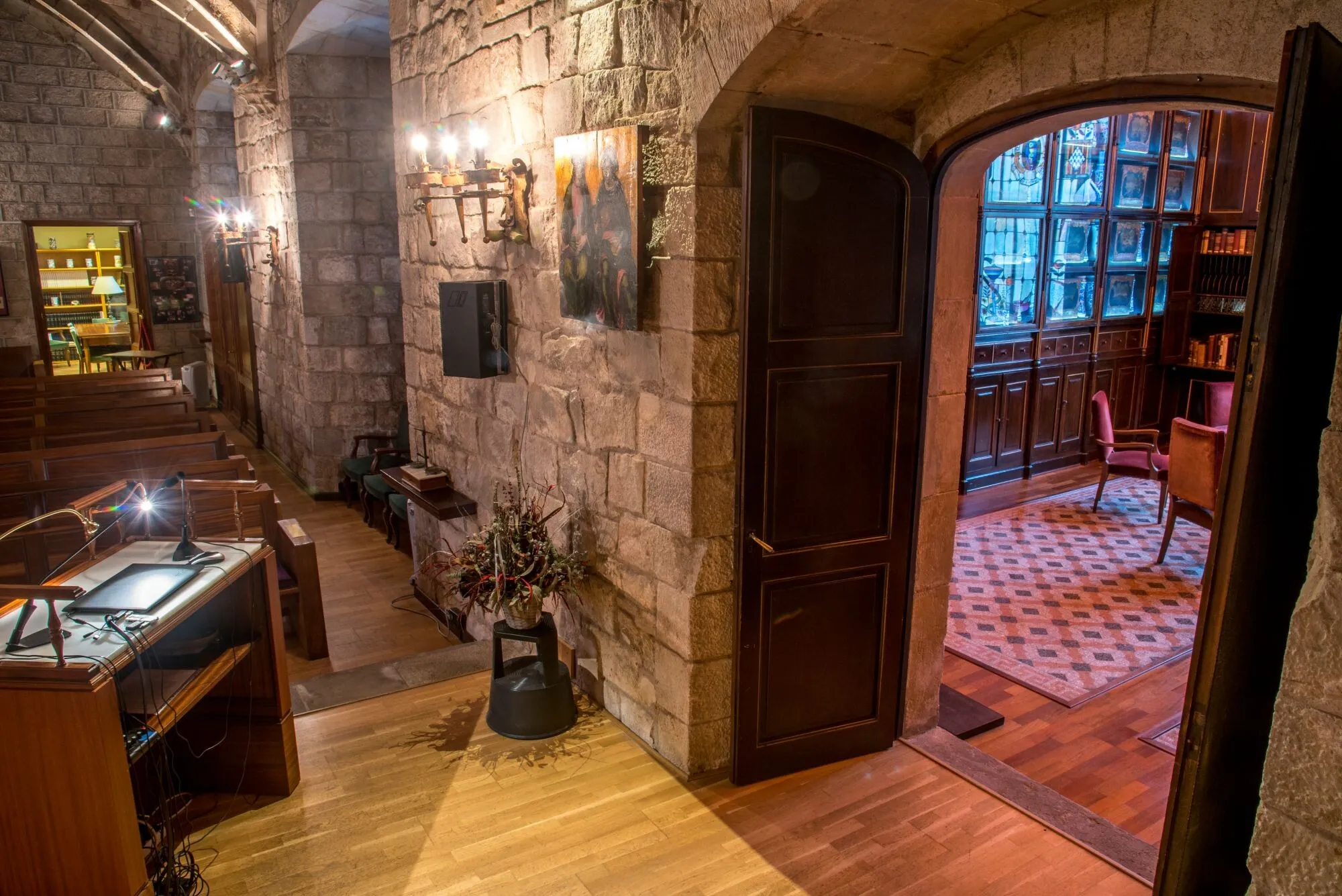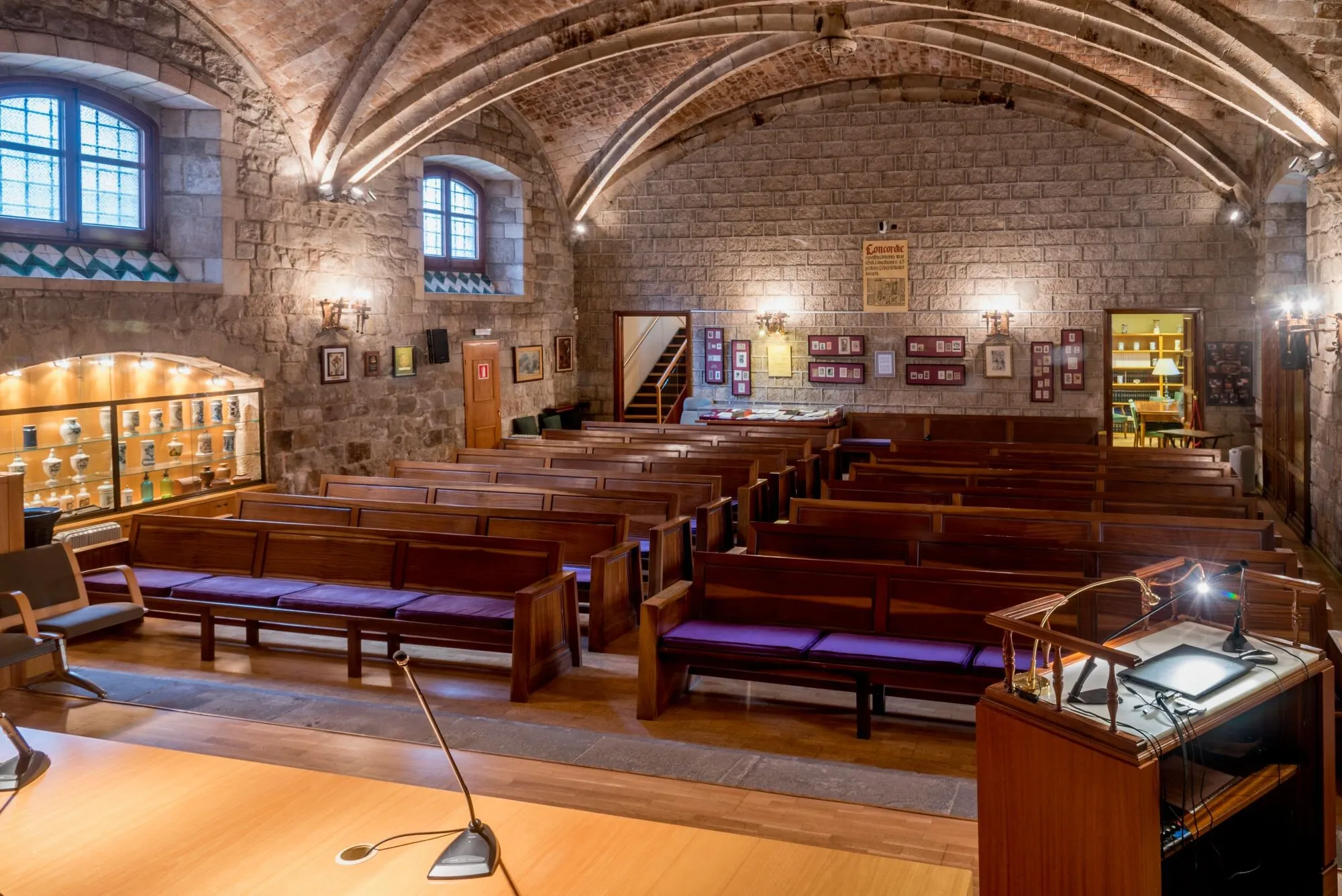 The building is located within the cloister of the former Hospital de la Santa Creu, preserving historic elements of great heritage value. Within the same complex stands the hospital pharmacy, founded in 1417, adding exceptional historical significance to the setting.