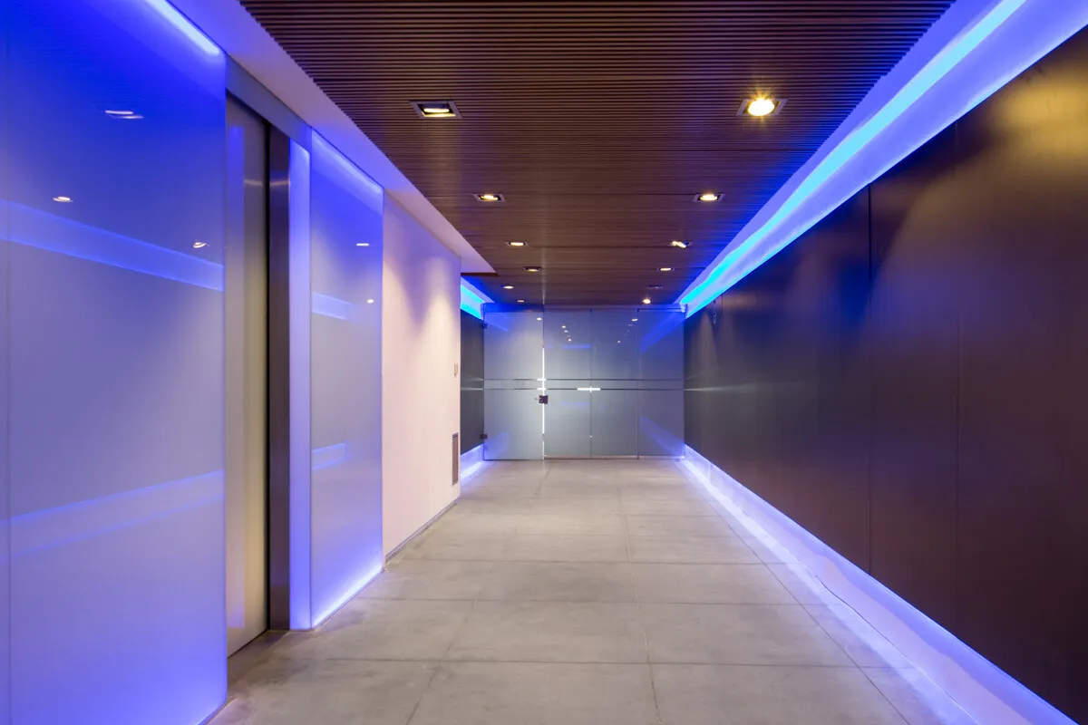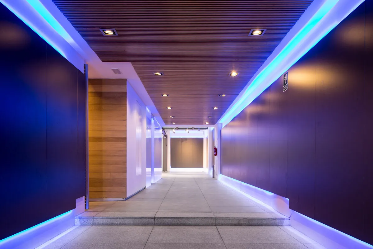 Located near El Retiro Park, this venue combines a vibrant urban setting with the calm and privacy required to inspire professionalism. The space has been carefully designed with a strong focus on functionality and refined aesthetics. Its open-plan layout and vinyl-covered walls offer great flexibility for customisation, allowing each event to be styled according to specific requirements. Unonueve’s LED lighting system and its striking central glass cube make it possible to adjust not only the intensity but also the tone and colour of the lighting to suit the atmosphere of the event.